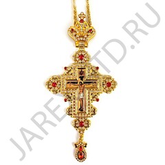 Крест наперсный с цепью, цинковый сплав, эмаль, камни; l75,5.Арт. КН-В123