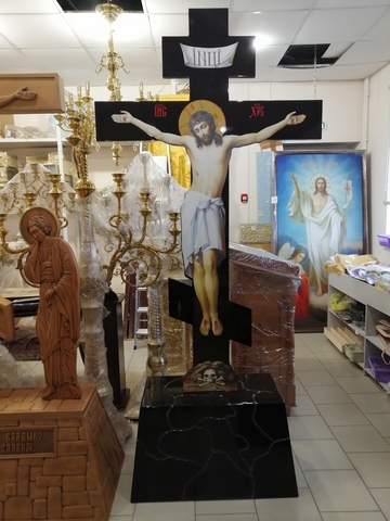 Голгофа без предстоящих 2.8х1.15х0,48 м. (распятие сосна, подставка фанера) (Ц)