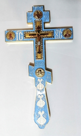 Крест напрестольный эмаль, голубой 14,5х26 (ГЕ)