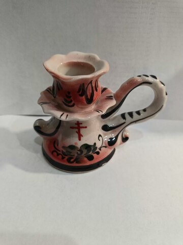 Подсвечник керамичский роспись с ручкой (ИНД-1112)