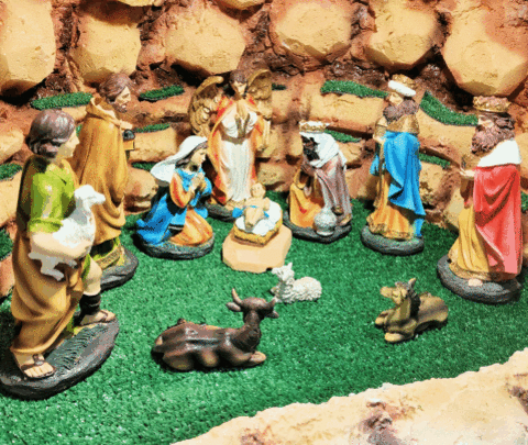 Вертеп с фигурами до 22 см Рождество (р-р 87х60х70см св. подсв., гирл.) (РК48)