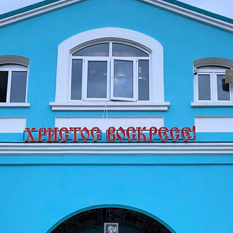 Вывеска "ХРИСТОС ВОСКРЕСЕ!" (объемные буквы с подсветкой, мет. каркас)(h-29 см)(РК48)